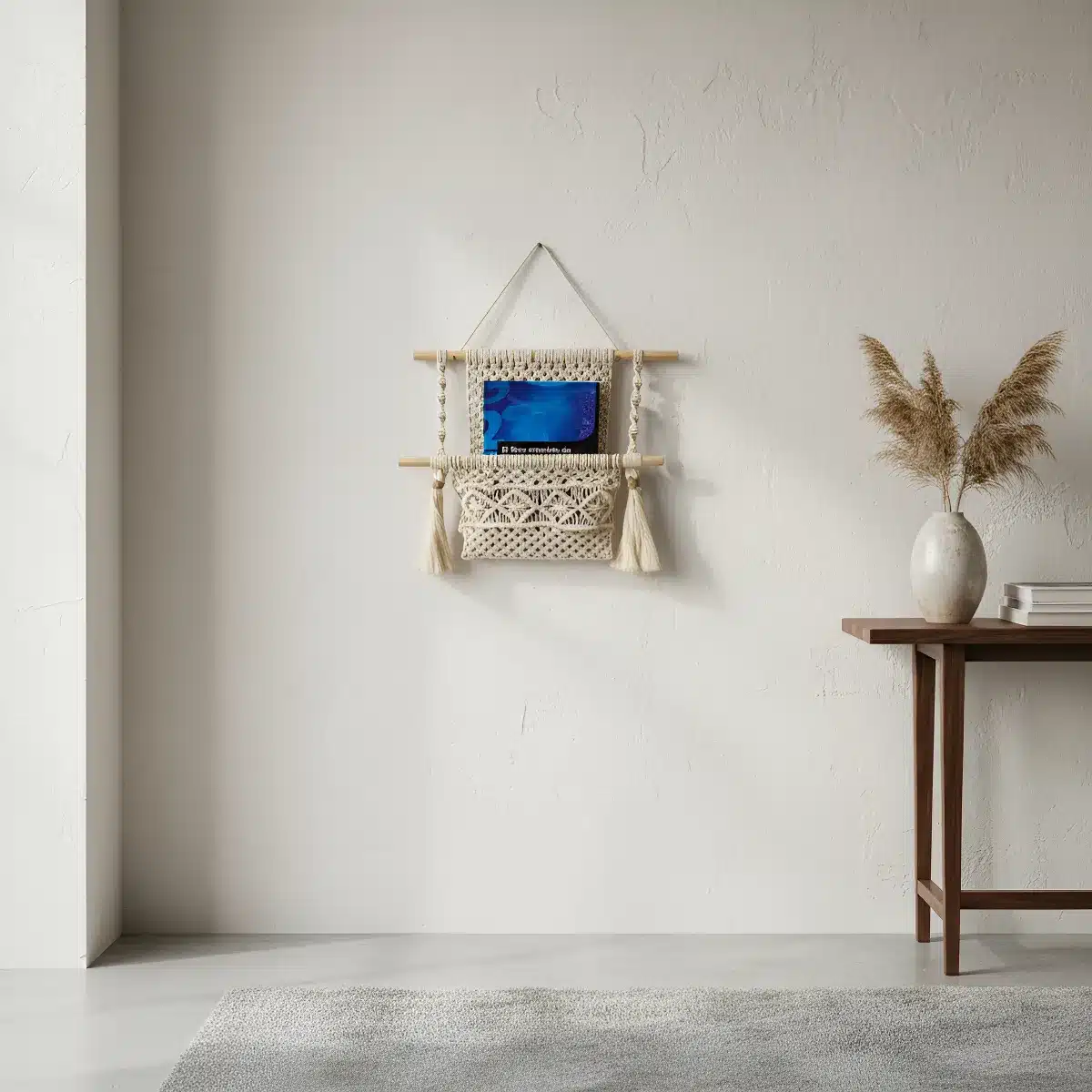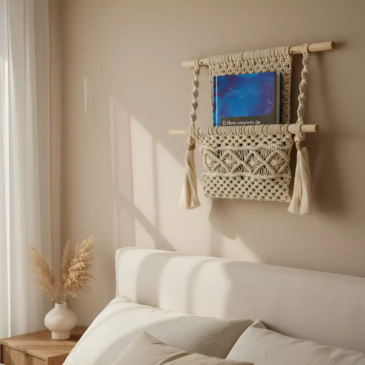 El diseño en macramé, con delicadas borlas, aporta un aire acogedor y artesanal, ideal para quienes buscan un ambiente cálido y personalizado. Perfecto para cualquier rincón de tu hogar, desde la sala de estar hasta el dormitorio, este Revistero Porta Libros Con Borlas se convierte en un elemento decorativo que refleja tu estilo personal.
